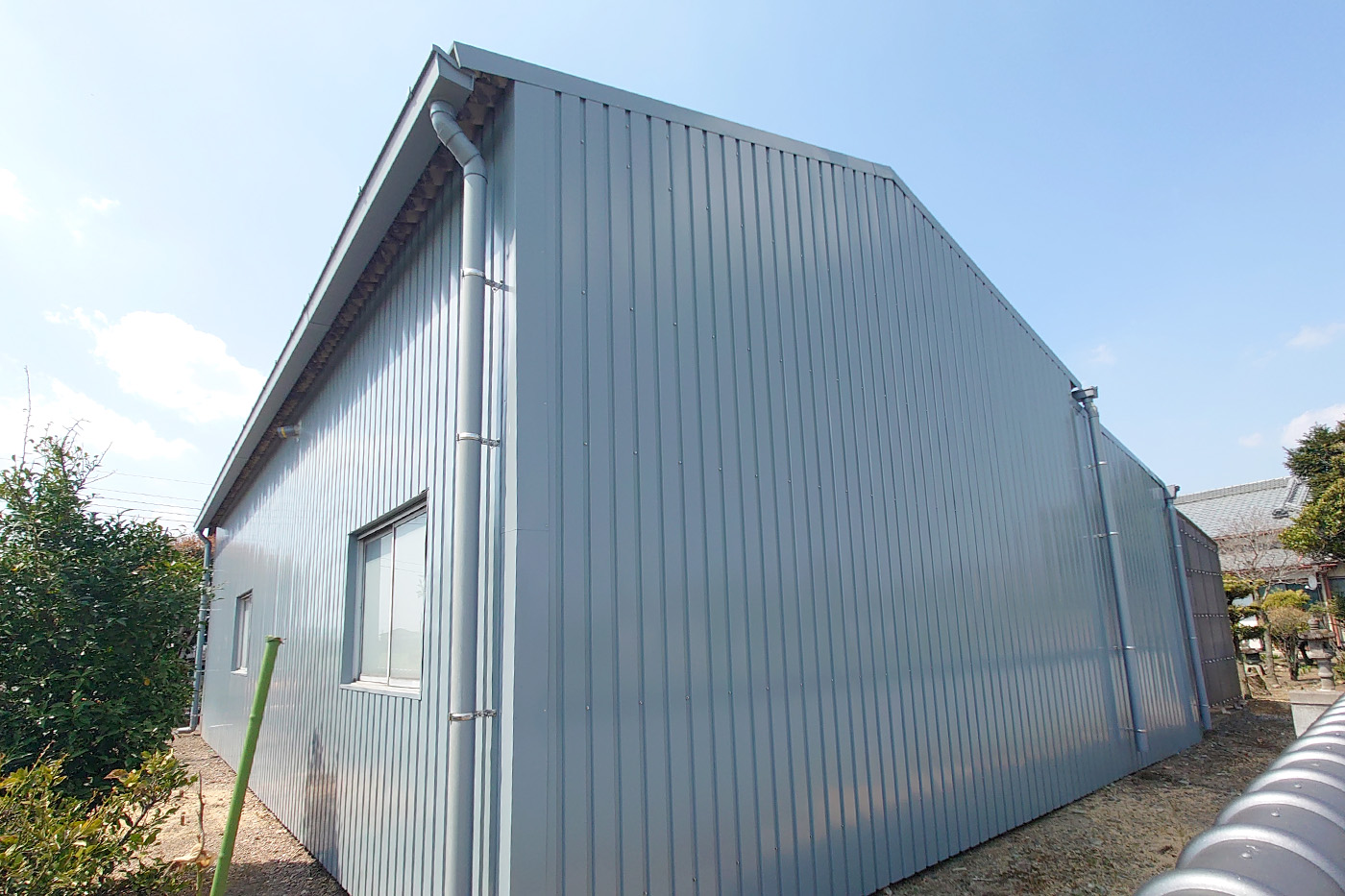 工場や車庫、農業用倉庫の古い素材を剥がし、スケルトンの状態からの新規張り直しや、既存の素材を剝がすことなく、上から被せることにより処分費を抑えられるカバー工法もご提案いたします。(余計な中間マージンが無いため、他社と比較して安価にリフォームが可能です。)